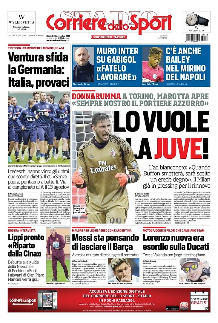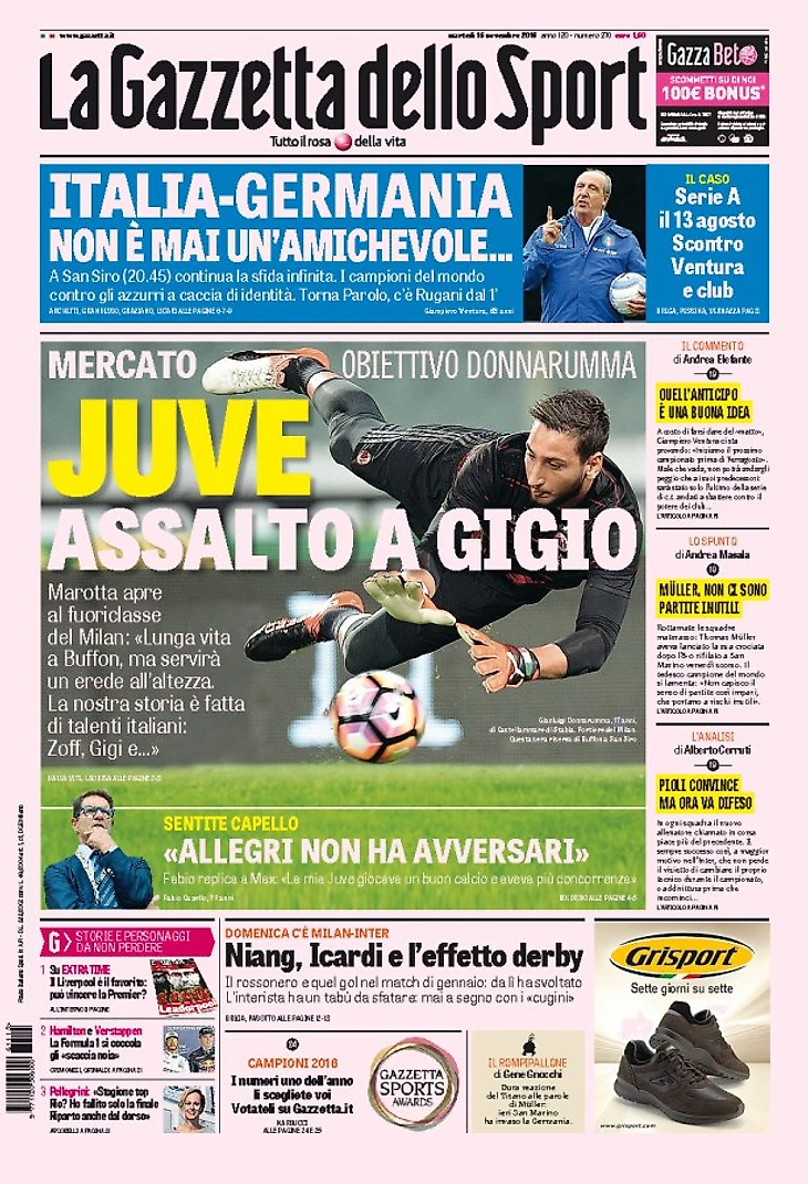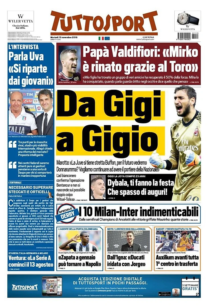 «От Джиджи к Джиджо». Заголовки Gazzetta, TuttoSport и Corriere за 15 ноября