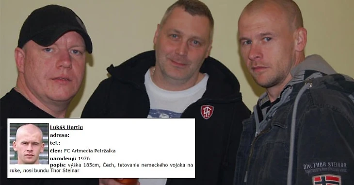 И уже там в СМИ начали появляться заметки о том, что Гартиг за год в Словакии успел доиграться до попадания в самый настоящий список неонацистов. Ныне закрытый сайт антифа Братиславы, на котором собирались данные про всех людей в городе с неонацистскими взглядами, добавил Гартига к другим колоритным персонажам с мини-досье, где было указано место работы, год рождения, описание: «Рост 185, чех, татуировка немецкого солдата на руке, носит Thor Steinar». И еще фотография. Там отдельно, но есть и несколько совместных с местными неонацистами, в компании которых его частенько видели.