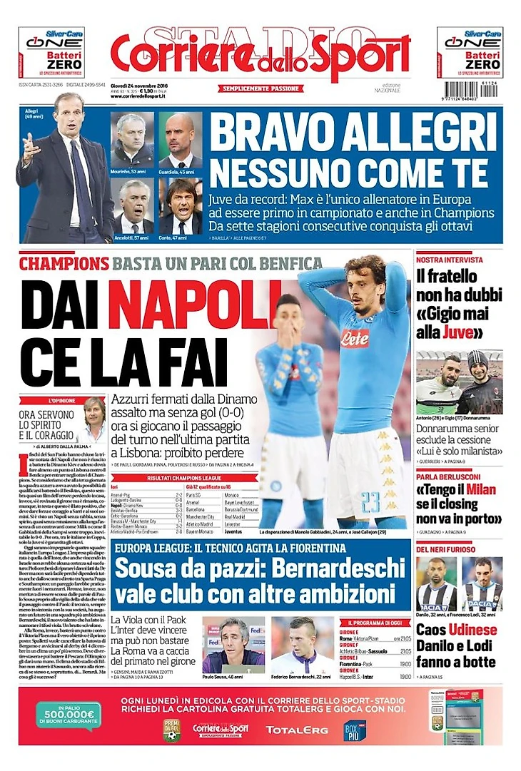 «Давай, «Наполи», сделай это». Заголовки Gazzetta, TuttoSport и Corriere за 24 ноября
