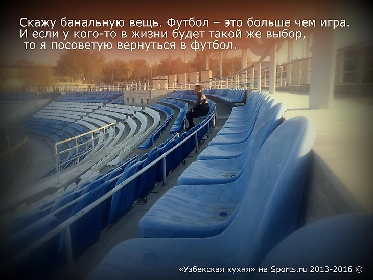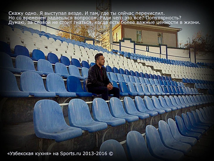 - На самом деле все просто: деньги. Мой последний клуб («Джамбай» - клуб, ныне играющий в полулюбительской лиге Узбекистана – прим. Е.Р.) , перестал получать финансирование со стороны спонсоров и хозяев клуба. Для сохранения клуба можно было заплатить 200 или 300 миллионов сумов, в качестве ежегодного взноса за участие в турнирах УФФ (Узбекской Федерации Футбола – прим Е.Р.) чего, разумеется, не произошло. К тому же, нам до сих пор должны денег.