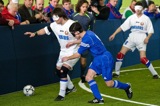 Футбол для незрячих стал набирать популярность с 2004 года, когда был включен в программу Паралимпийских игр. Правда, первый такой чемпионат мира прошел в Испании еще в 1986 году. Кстати, на Паралимпийских играх пока сборная Бразилии не имеет конкурентов, наверное, отчаявшиеся не просто что-то выиграть, а хотя бы попасть в сборную, бразильские футболисты добровольно лишили себя зрения ради славы. Необычным в незрячем футболе является отсутствие оффсайдов, а также запрет полевым игрокам разговаривать между собой, чтобы было слышно мяч, издающий специальные звуки. А еще вратарю команды разрешается видеть чуть лучше остальных игроков, чтобы руководить действиями команды, но запрещается бить по воротам и выходить из своей штрафной.