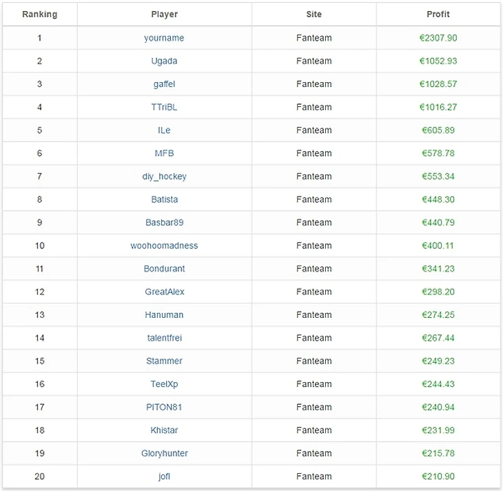 На Fantasybet в лидерах месяца те, кто занял первые 6 призовых мест в сезонном турнире Норвежского чемпионата (Norwegian Championship of Fantasy 10000$), который закончился 6 ноября.