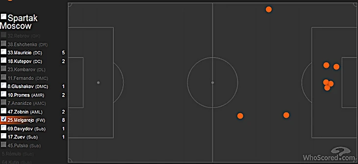 Как сами видите - Денис больше всего был активен в непосредственной близости от штрафной Селихова. И с мячом он встречался относительно редко, например, у Романа Зобнина таких встреч было 63 при том, что он до конца встречу не отыграл.