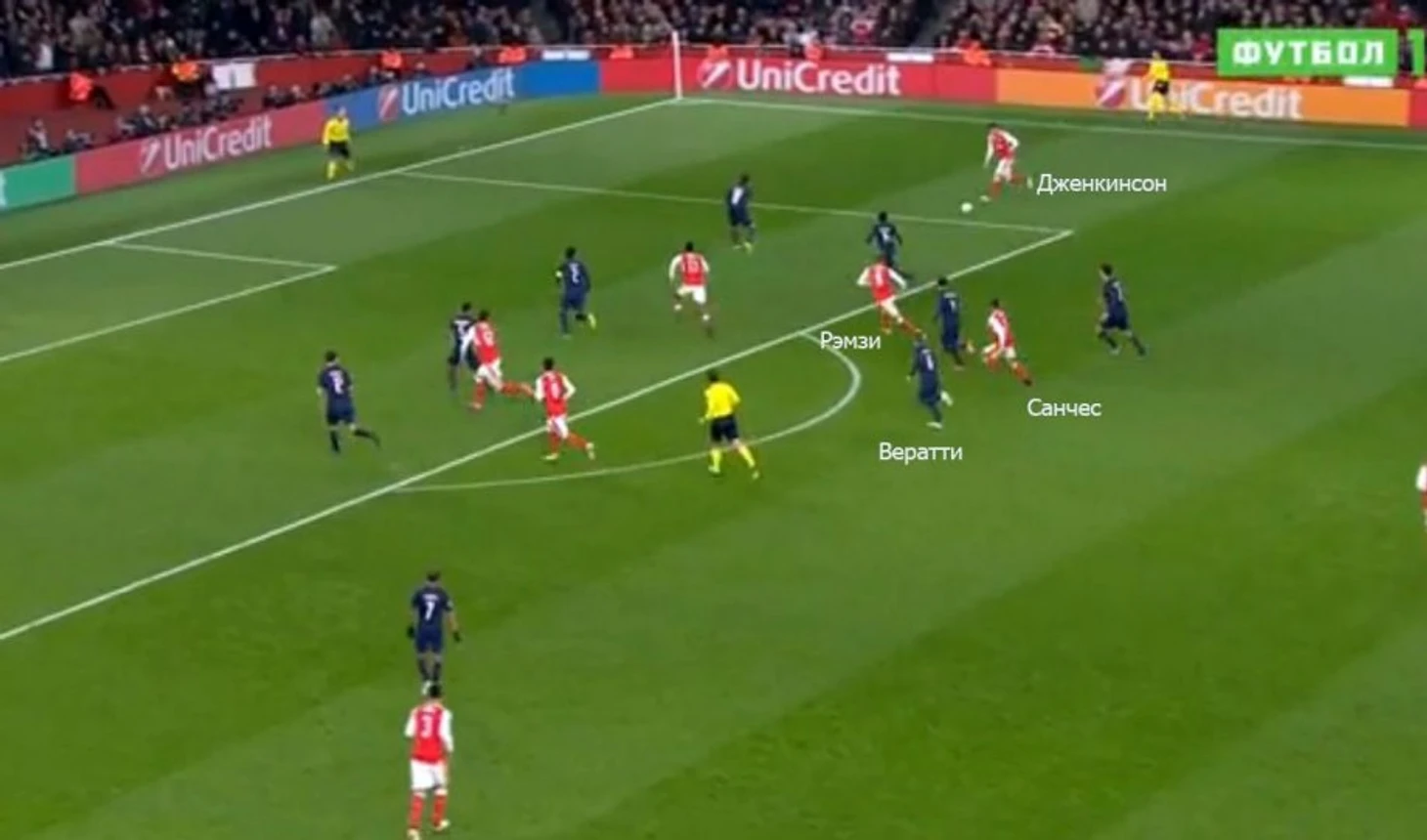 - тройка опорников в лице Верратти, Мотты и Крыховяка «посадили» Озила «в клетку», где он не мог даже нормально получить мяч. Поддержка со стороны Рэмзи и Коклена безрезультатно разбивалась о коллективные и слаженные действия парижан;