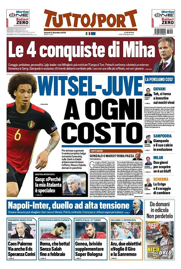«Лига Чемпионов или ничего больше». Заголовки Gazzetta, TuttoSport и Corriere за 2 декабря