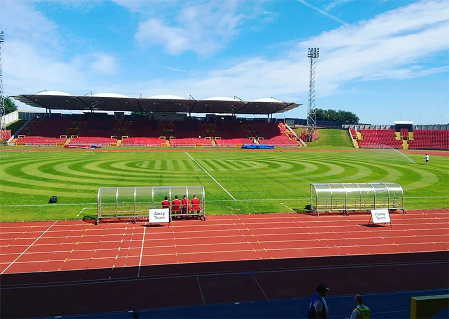 Не только у «Вест Хэма» в Англии не чисто футбольный стадион. Вот тут играет в футбол клуб «Гейтсхэд» (д5) и проводятся соревнования по легкой атлетике.