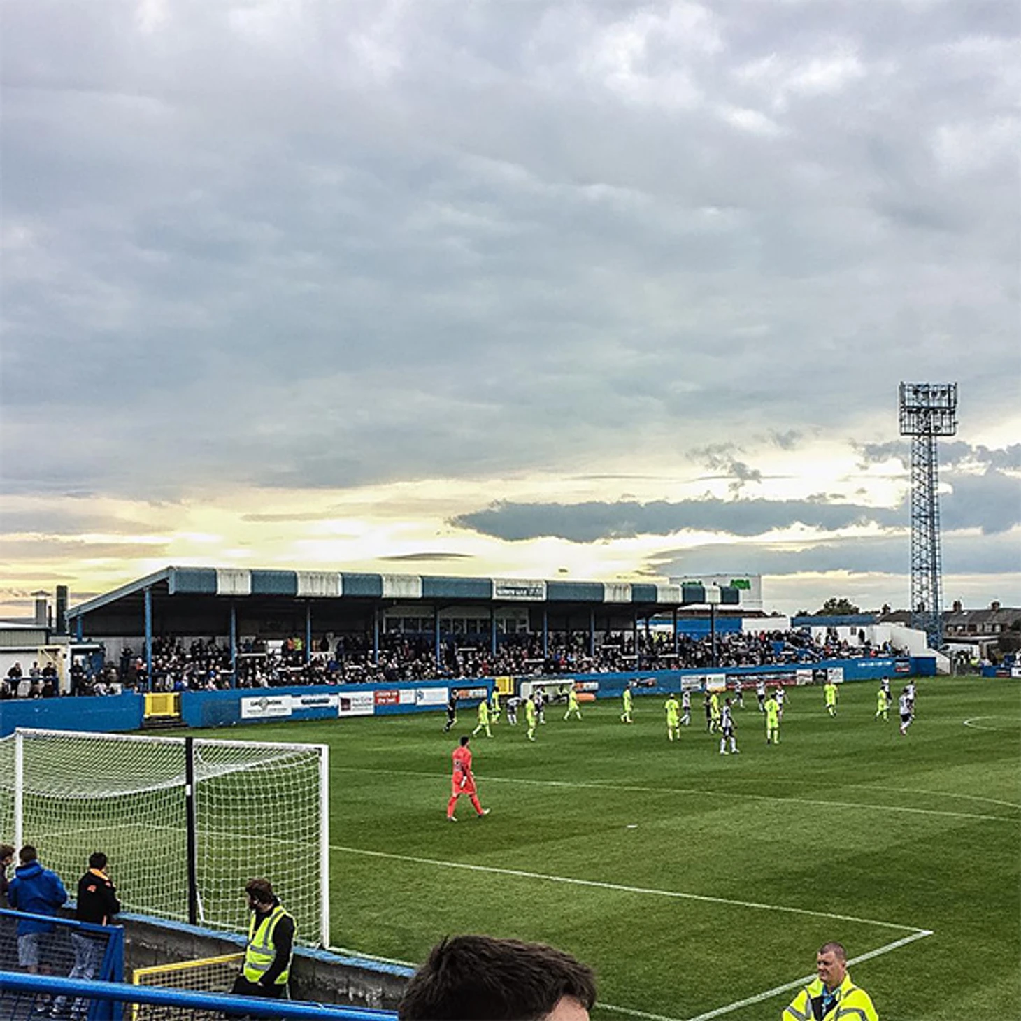 Вот это «Прентон Парк», здесь играет «Транмер Роверс», который когда-то добирался до второго дивизиона, а сейчас обитает в пятом. Стадион построен более 100 лет назад и сейчас вмещает 16.5 тысяч зрителей. Тут также играет дубль «Ливерпуля».
