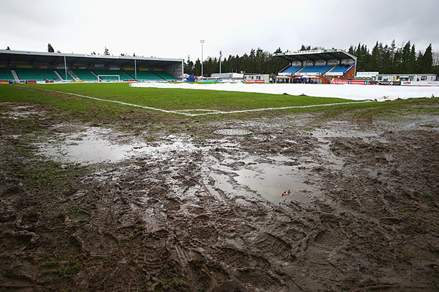 Но да, в Англии тоже такое бывает: и до того небезупрченое, судя по всему, поле арены в январе малость развезло.