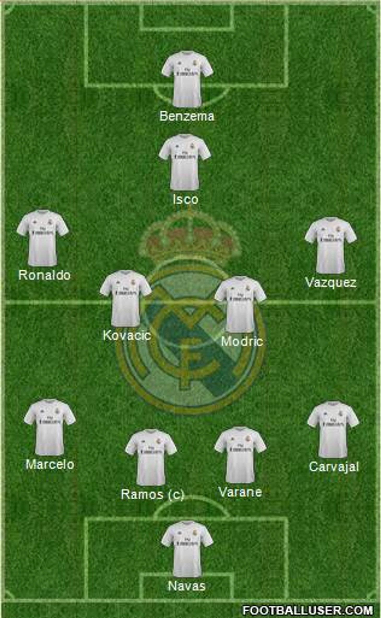 Все-таки, мои прогнозы не сбылись. Вернее не прогнозы, а желания. Зидан решил выставить проверенную в мадридском дерби схему 4-4-1-1 с таким номинальным построением: