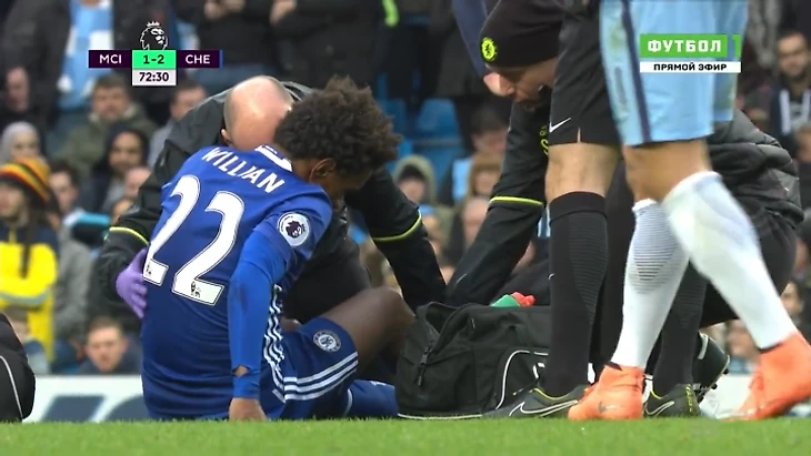 Ч: «Ну так или иначе Педро покинул пределы поля, и Виллиан, судя по всему, готовится к выходу на замену».