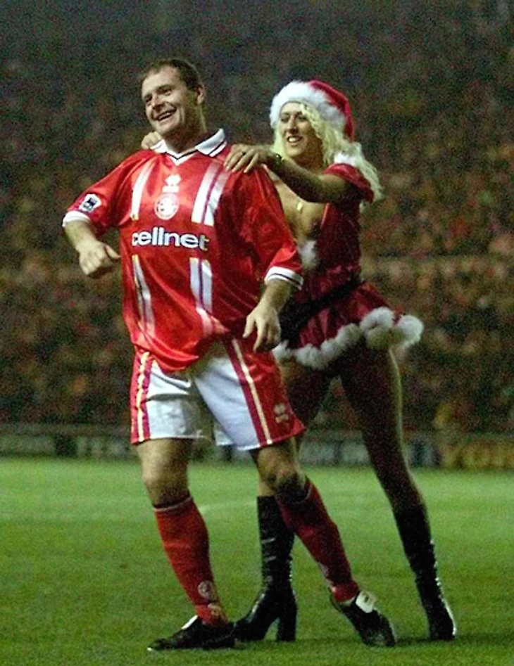 Снегурочка с вывалившимся полутитием ублажает Пола Гаскойна.