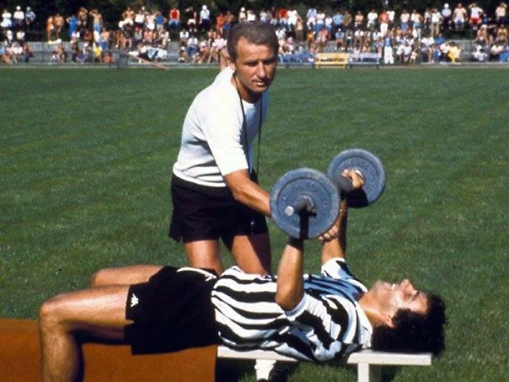 Джованни Трапаттони помогает Мишелю Платини на тренировке в «Юве».