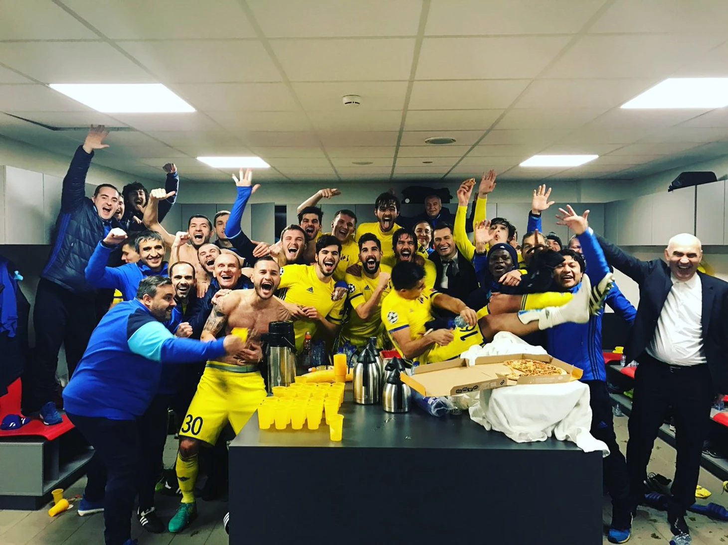 Футболисты "Ростова", сыграв вничью 0:0 с голландским ПСВ в 6 туре группового этапа Лиги Чемпионов, заняли третье место и вышли в весеннюю стадию Лиги Европы. После игры в клубных соцсетях "желто-синих" появилась яркая эмоциональная фотография.