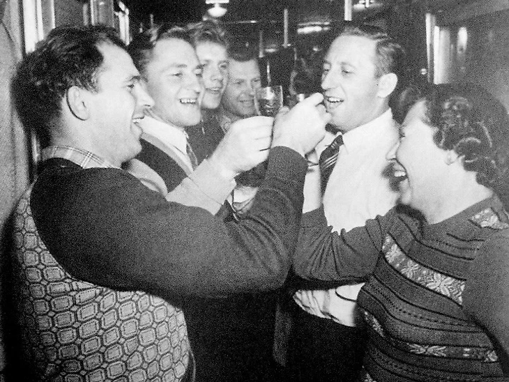 — Отмечали Новый год. Поставили ёлочку в вагоне – всё как положено. Сели – Лёва Яшин, Нетто, Симонян… Немного попраздновали и решили навестить ребят ватерполистов – сдружились с ними. Их на Играх откровенно обидели – судья прихватил. Мы как чемпионы ехали в первом вагоне, они – в седьмом или восьмом. Весь состав почти надо было пройти. Тронулись в путь. Куда ни заходишь: «О, футболисты! Давай по рюмочке!». Как отказаться? Неудобно. Выпивали понемножку – но в каждом вагоне. Зам руководителя делегации ехал в отдельном купе – тоже к себе зазвал. В общем, до ватерполистов дошли уже тёплыми. А я ещё с собой бутылку красного вина, «777», захватил, на пароходе купленную…