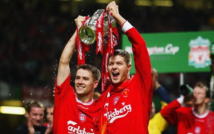 На фото: Майкл Оуэн и Стивен Джеррард с Кубком Футбольной лиги