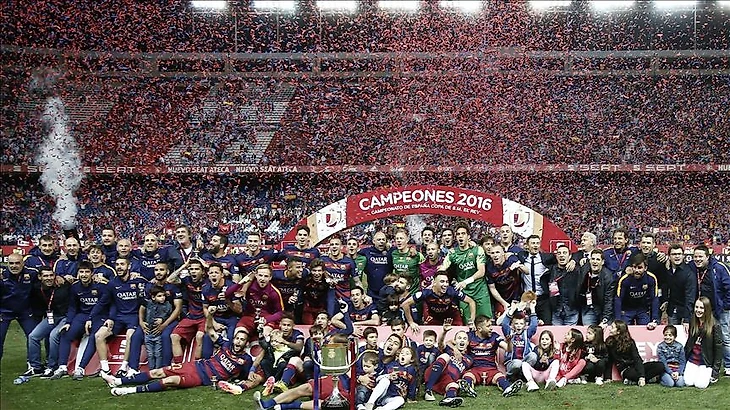 В вышеупомянутой серии из 18 побед, Барселона без особых трудностей добралась до финала Кубка Иснании, в котором сыграла с Севильей. За 90 минут встречи победителя не выявили, и игра была переведена в дополнительное время. На 98 минуте забивает Альба, а на 120 Неймар делает окончательный счет в игре - 2:0. Таким образом, 22 мая, Барселона выигрывает свой второй трофей за неделю - Кубок Короля. Игроки счастливы и дружно скандируют: "Champeooones, champeooones, ole ole ole"
