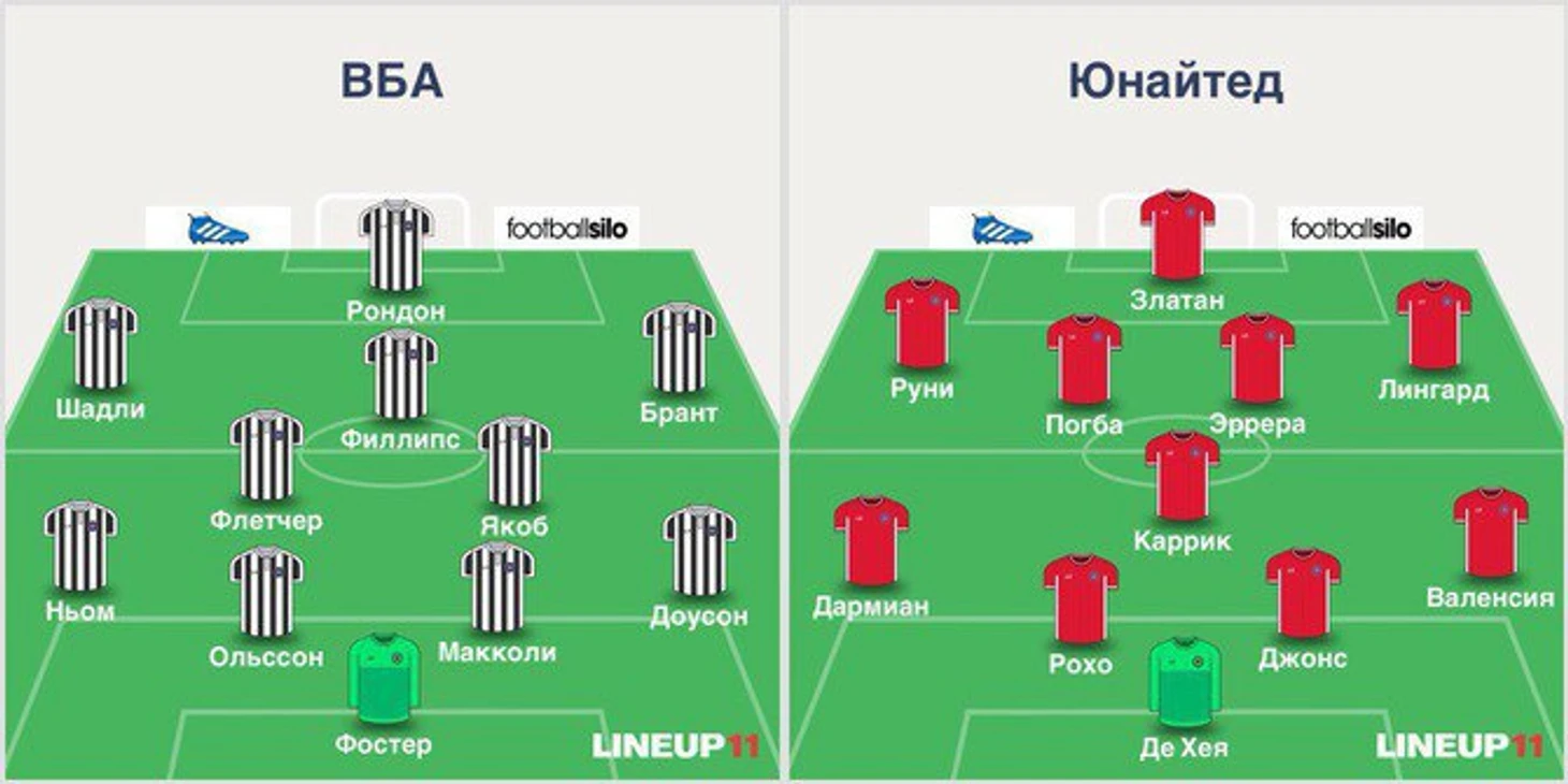 Голы нокаутировали ВБА. МЮ создал мало моментов и забил не самые очевидные голы в очень неудобное для соперника время. Первый гол совсем не вытекал из логики игры - за 5 минут МЮ всего однажды дошел до штрафной «Вест Брома» (там, кстати, вполне мог быть назначен пенальти за фол Ньома на Лингарде). Фактически матч для МЮ выиграл Златан Ибрагимович.