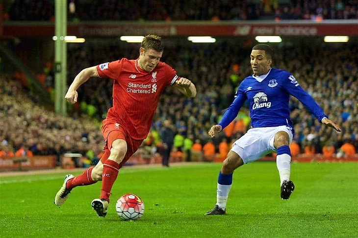 На фото: Настоящее время. Джеймс играет против Аарона в мерсисайдском дерби