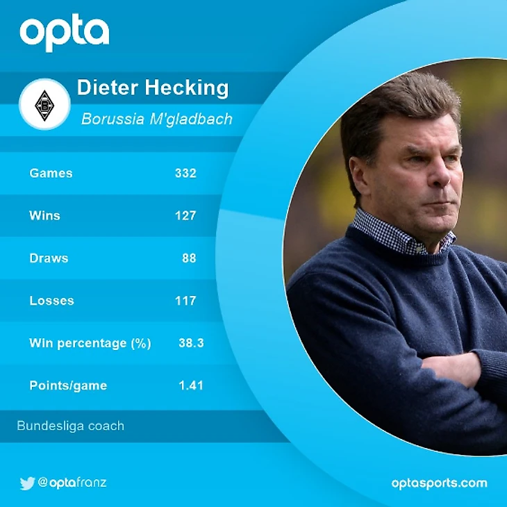 Неудивительно, пожалуй, что с такими результатами он в среду уступил место на тренерском мостике Гладбаха едва успевшему забрать трудовую книжку из Вольфсбурга Дитеру Хеккингу.