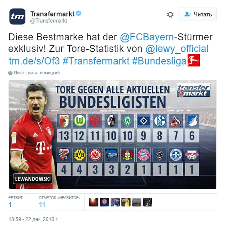 Роберт Левандовски забил свой 133-й гол в Бундеслиге и теперь занимает второе место в списке бомбардиров-иностранцев. Он уступает только Клаудио Писсаро.