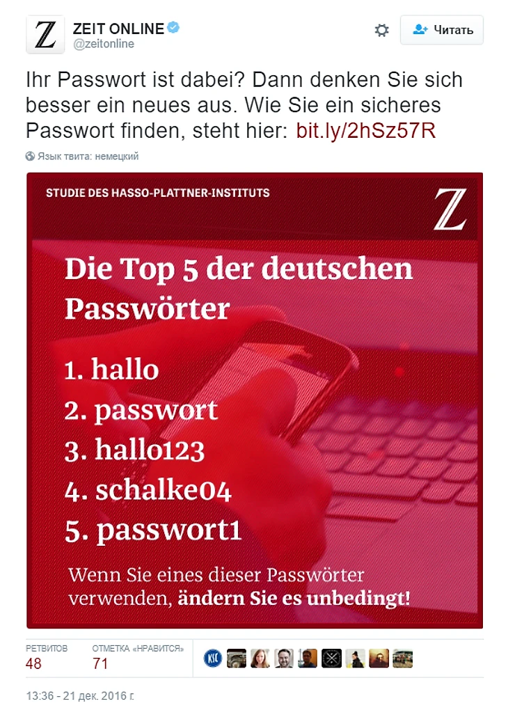 Ну а издание Zeit провело забавное исследование самых популярных паролей емецких юзеров. Результаты вышли кое-где забавными.