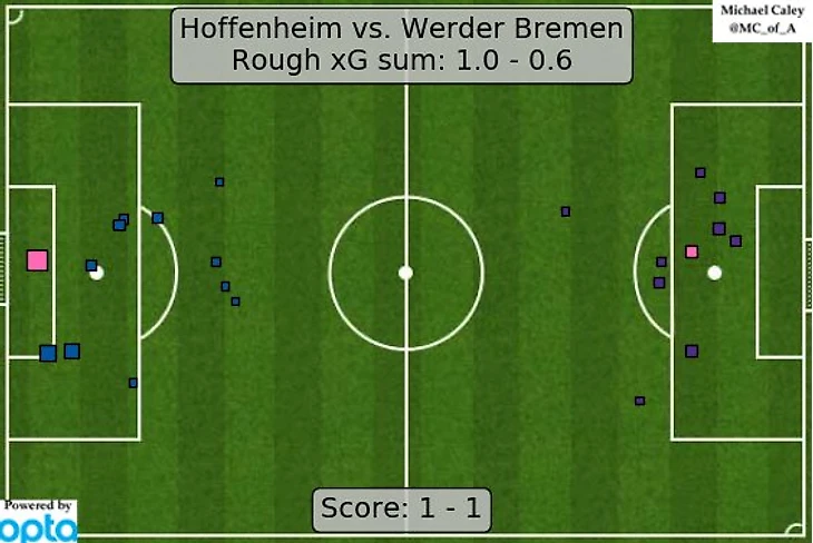 Седьмой раз «Хоффенхайм» забивает в играх с «Вердером» первым, но не выиграл ни одной из этих встречи (пять ничьих, два поражения).