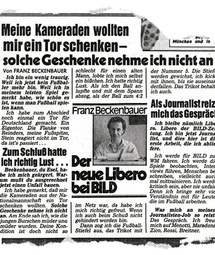 Так все начиналось. Первая колонка от 3 июня 1982 года. Франц становится "Новым либеро у BILD".