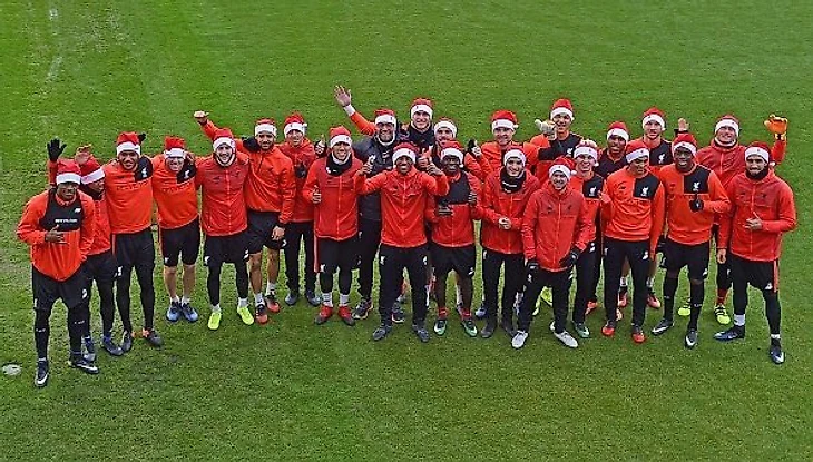 Наверняка, кто-то из юных болельщиков "Ливерпуля" загадал желание, у старины Санты, чемпионство любимого клуба в этом сезоне. Результат желания будет зависеть, конечно же от Санты, или от этих "Красных новогодних волшебников"...