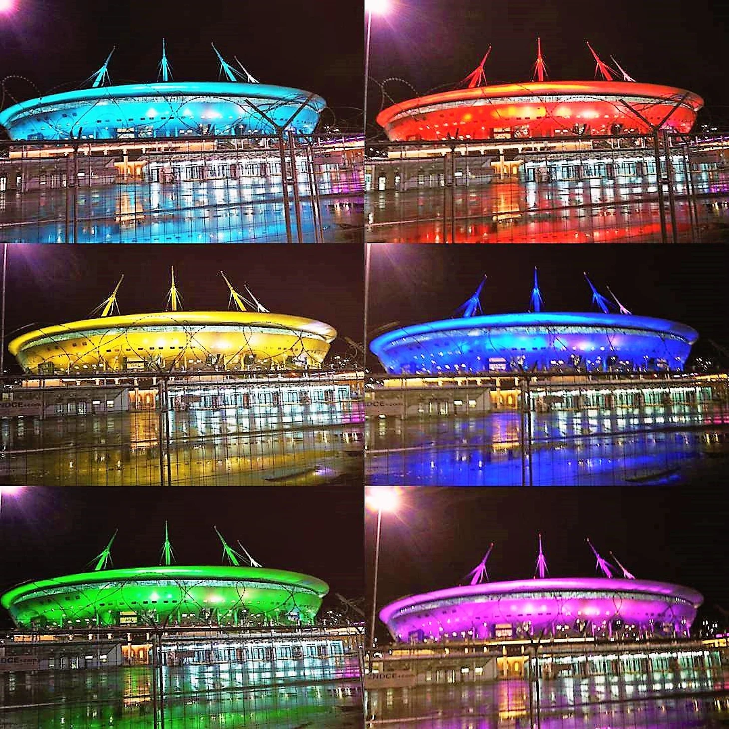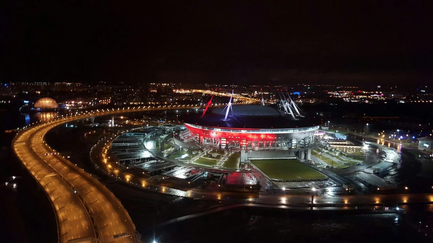 Опробована вовсю подсветка стадиона Зенит Арена, на видео вы можете наблюдать, как цветовая палитра меняется с одного цвета на другой с интервалом в одну секунду