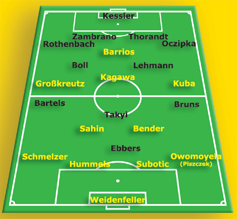 «Боруссия». То, что в Дортмунде все идет как надо, это отражается не только в таблице, но и видно по кадровым ресурсам вестфальского клуба. Нури Сахин становится настоящим неформальным лидером и переживает на данный момент свой лучший период в карьере, когда у юного турка получается на поле все! И даже финты Роналду! Шинджи Кагава, имея опыт игры в Бундеслиге без году неделя, играет по ощущениям так, как будто это уже ветеран дортмундской команды, и даже не зная немецкого языка, понимает «по-немецки» на поле. Марсель Шмельцер, уже давно отправивший в отставку Деде, напоминает Филиппа Лама в его более молодые годы. Ну и пусть он повыше и потолще! Ну будьте снисходительны ))) Матс Хуммельс лично для меня (не знаю, как для вас) только утверждается в глазах как наш самый лучший защитник. И даже его невнятная игра во Львове не переменила такого мнения в моих глазах. Дело в том, что еще при первом сезоне с Клоппом во главе только многочисленные травмы помешали «Хумми» стать виднее. А так, и прошлый сезон, и нынешний показывают, что именно Матс Хуммельс является нашим самым главным центральным защитником. И то, что именно Суботич стоит сейчас дороже своего партнера, мне кажется слишком льстивым в адрес серба. В отличие от Хуммельса, сильно «Субо» сыграл только в своем самом первом сезоне. Как раз когда не было частенько его на поле главного конкурента по имени Матс Хуммельс. И именно Сахин, Кагава, Шмельцер и Хуммельс, кстати, входят по версии Kicker в 20-ку лучших игроков текущего чемпионата. Причем первые два занимают и первые две строчки!