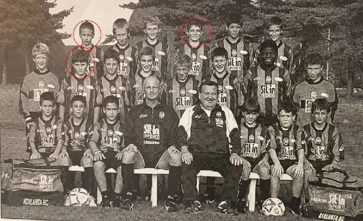 (Роберто Гальярдини - самый правый из отмеченных в верхнем ряду - в молодёжной команде "Аталанты". Левее - Андреа Конти и Маттиа Кальдара)