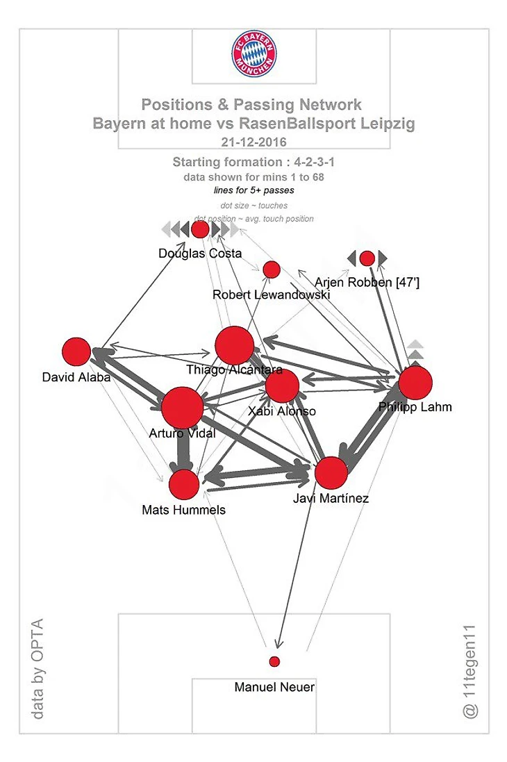 Мюллер играл в центре поля, а весь правый фланг закрывал один Рафинья. Бавария, конечно, создавала некоторые моменты, игра оживилась с выходом Франка Рибери, но жирную точку в матче поcтавил Дуглас Коста