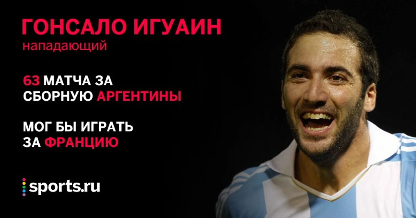 А вот история Гонсало Игуаина уже интереснее. Родился в семье аргентинского футболиста Хорхе Игуаина, который играл за французский клуб «Брест», но переехал в Аргентину в возрасте лишь десяти месяцев. Хоть он и не говорит по-французски, но является обладателем паспорта, и в 2006-м его приглашали в состав сборные Аргентины и Франции. Тогда он отказал всем, взяв время на размышление, но позднее решил биться с Месси и остальными.
