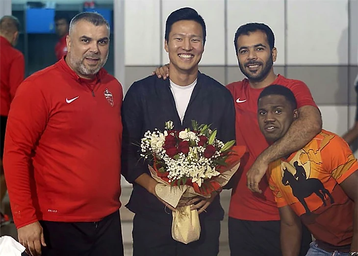 Корейский полузащитник Гвон Ген Вон этой зимой перешел в «Тяньцзинь Цюаньцзянь» из дубайского «Аль-Ахли» за 10,5 млн евро. Цена по Transfermarkt – 400 тысяч евро. Посмотрите на это счастливое лицо: