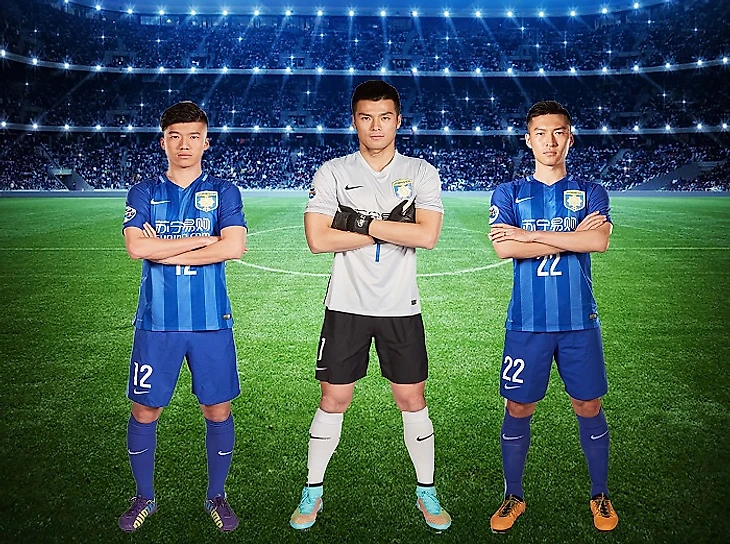 31 декабря 2015 года Гу Цао (в центре) был самым дорогим вратарем Китая – «Цзянсу Сунин» заплатил за него 7,05 млн евро (50 млн юаней). Оценка Transfermarkt – 125 тыс.