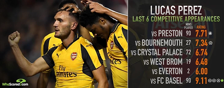 Следом за потрясающим голом Лукаса в ворота Борнмута последовал победный голевой пас в Престоне (2-1). Несмотря на то, что его летний приезд на Эшбертон Гроув едва ли можно назвать громким по меркам Премьер-Лиги, испанец начинает показывать признаки того, что он заслуживает больше игрового времени. Хет-трик в памятном матче в Базеле месячной давности (4-1) , в свою очередь, принес ему оценку 9,11 и звание игрока матча, попутно став ярчайшим эпизодом его арсенальской карьеры на сегодняшний день, и его нынешние выступления в значительной степени опираются на тот успех в Швейцарии.