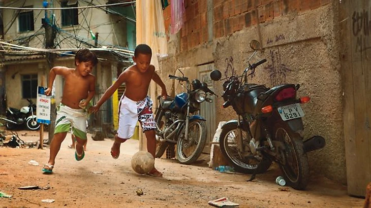 Мальчишки гоняют мяч в фавеле Рочинья в Рио-де-Жанейро. Для бразильских бедняков футбол - это и развлечение, и надежда.