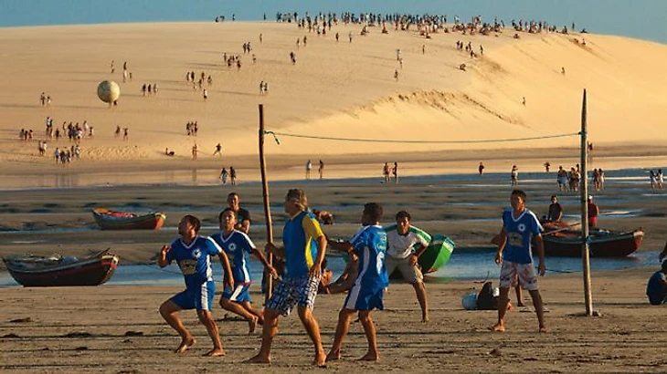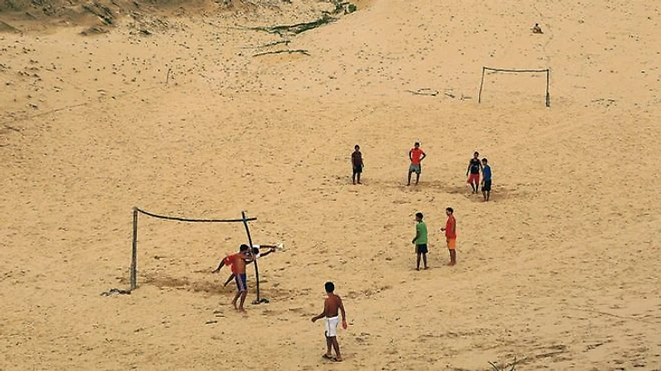 Дети играют в футбол босиком на чудесном пляже из белого песка в Морро Бранко. Наверное, они мечтают о славе Неймара, Рональдиньо и Рибейро.