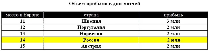 Совокупный доход всех клубов РФПЛ в дни матчей чемпионата составил жалкие 31 млн евро. Для сравнения: клубы швейцарской лиги зарабатывают 71 млн, голландские – 96, бельгийские – 74, шотландские – 50, шведские – 43.