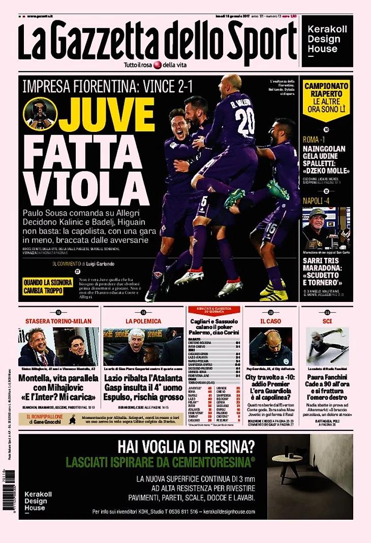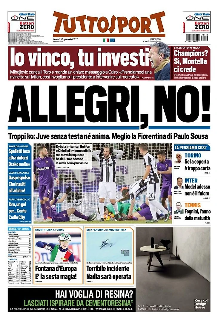 «Аллегри, нет!». Заголовки Gazzetta, TuttoSport и Corriere за 16 января