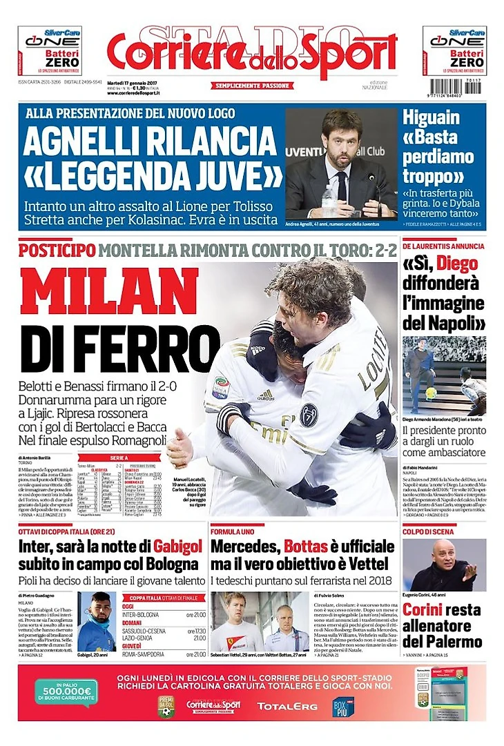 «Железный «Милан». Заголовки Gazzetta, TuttoSport и Corriere за 17 января