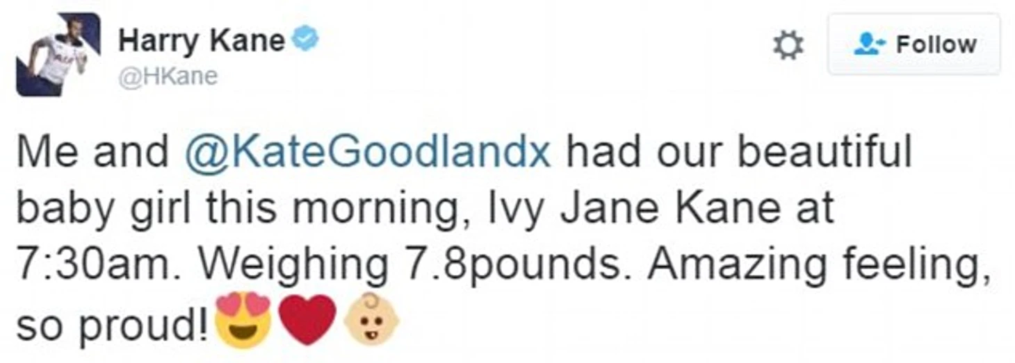 8 января 2017 года свершилось главное события в жизни нападающего «Тоттенхэма» и сборной Англии Харри Кейна - он стал отцом. Его супруга Кейт Гудлэнд подарила Харри дочку.