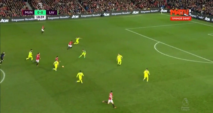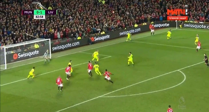 На 83-й минуте "Манчестер Юнайтед" всё-таки переиграл оборону "мерсисайдцев", и по атаке видно, что защищавшиеся к тому времени сильно устали. Сначала, при подаче в штрафную, в ней скопилось много игроков, но при этом 3 футболиста из 5 никого не закрывали, а просто стояли вдали от места действия.