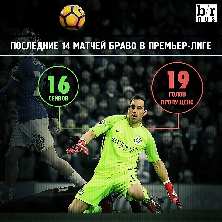Описать игру Браво можно переделанной детской фразой-насмешкой: «В «Барселоне» Лев Толстой, ну а в «Сити» ...». В матче с «Эвертоном» он пропустил 4 гола после 4 ударов в створ.
