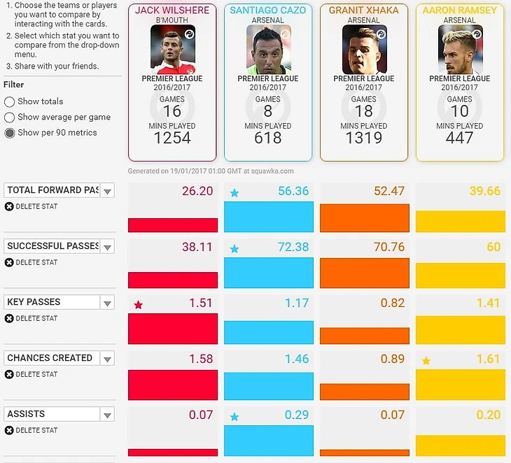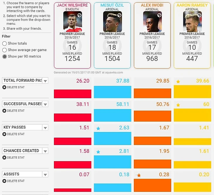Здесь Джек не лидирует ни по одному показателю. А Месут Озил доказывает парням кто тут на самом деле топ-игрок.