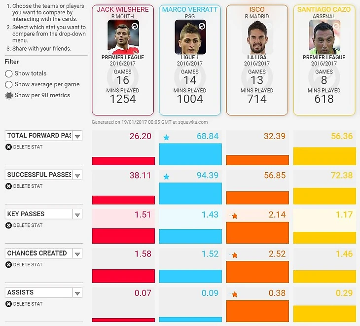 Тут я взял в сравнение Марко Вератти и Иско. Не спешите бросаться в меня помидорами по причине того, что сливочный испанец играет не на той позиции и бла бла бла...