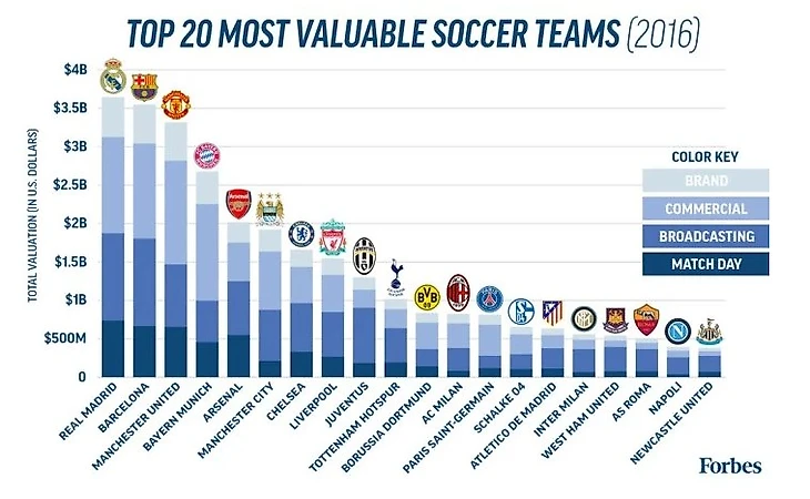 Но «Реал» все же остается самым дорогостоящим клубом мира, уже по версии Forbes