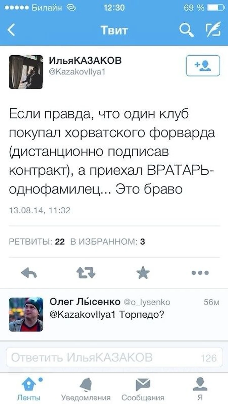 – Я понимаю русский (а Лалатович играл за донецкий «Шахтёр»), Чернышов меня оскорбил, а я ответил ему на его языке.