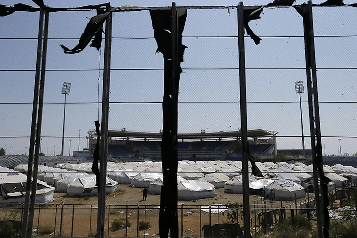 Обо всём этом я ещё тогда не знал. Мной владело желание срезать дистанцию до возвышающегося вдали стадиона «Эллиникон», но уже подходя к зданиям аэропорта я начал подозревать что-то неладное. Вдоль терминалов висело сохнущее бельё, вокруг бегали сильно смуглые даже для греков дети, а проходящие мимо взрослые не по доброму косились на мой фотоаппарат, видимо приняв за очередного журналиста, приехавшего снимать их горе для своей душераздирающий статейки. Обогнув терминалы аэропорта я упёрся в КПП на котором пара скучающих молодых людей в форме и с автоматами увидев меня чуть оживилась. Что бы не напрягать себя и их я с ходу выдал тираду о том, что являюсь туристом и целью визита является просмотр стадиона. На это мне был дан поражающий своей лаконичностью ответ «ноу». С автоматом не поспоришь и пришлось разворачиваться. Как говориться на «ноу!» и суда «ноу». Так я остался без олимпийских объектов и стадиона «Эллиникон», впрочем, и без них мне хватило впечатлений.