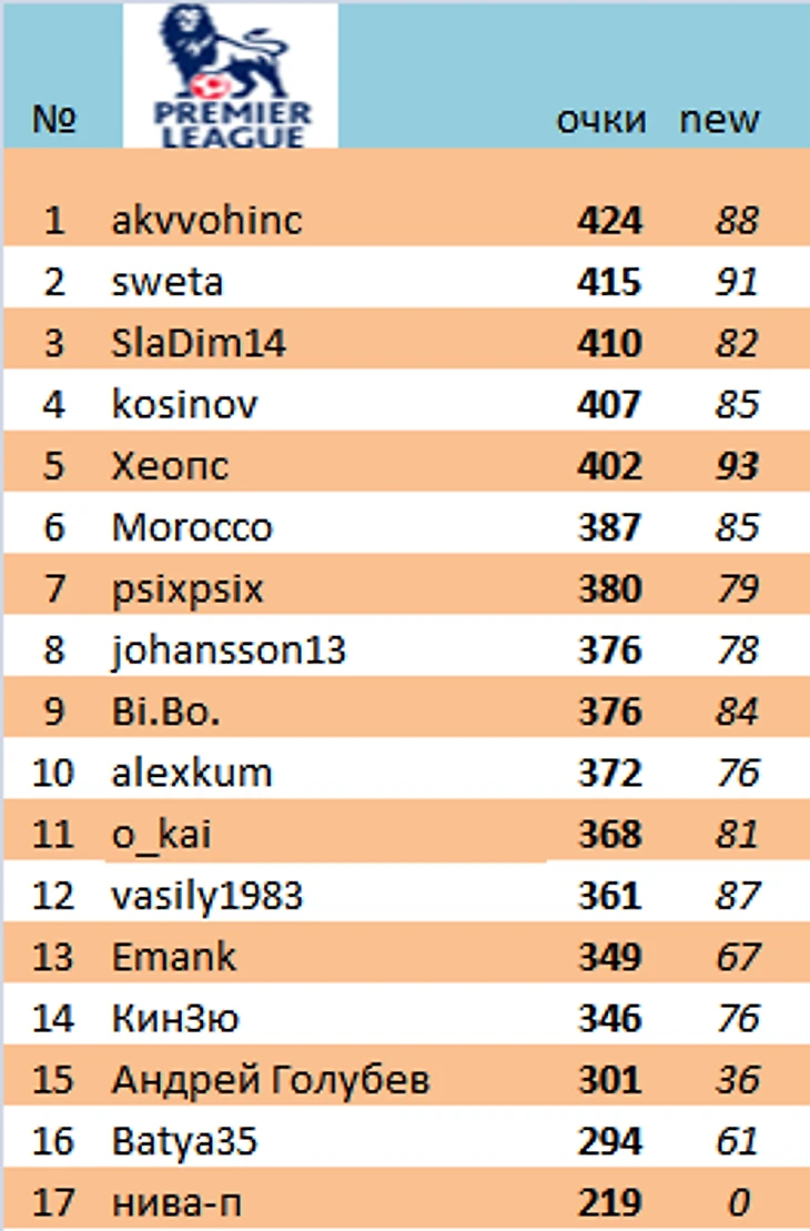akvvohinc вернул себе лидерство. Было -2, стало +8
